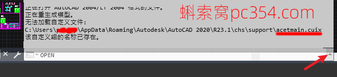 蝌索窩www.yeewaa.com我自己摸索的方法是:打開文件出現(xiàn)浮動的提示“輸入要加載的自定義文件的名稱”直接按ESC取消,然后點命令輸入對話框后面的小箭頭,里面就會有一個錯誤提示: